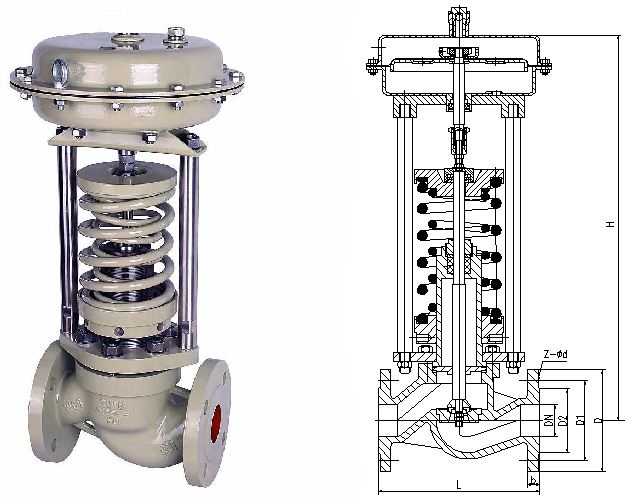 ZZYP自力式调节阀是一种无需外加驱动能源,依靠被调介质自身的压力为动力源及其介质压力变化,按预定设定设定值,进行自动调节的节能型控制装置。它集检测、控制、执行诸多功能于一阀,自成一个独立的仪表控制系统。